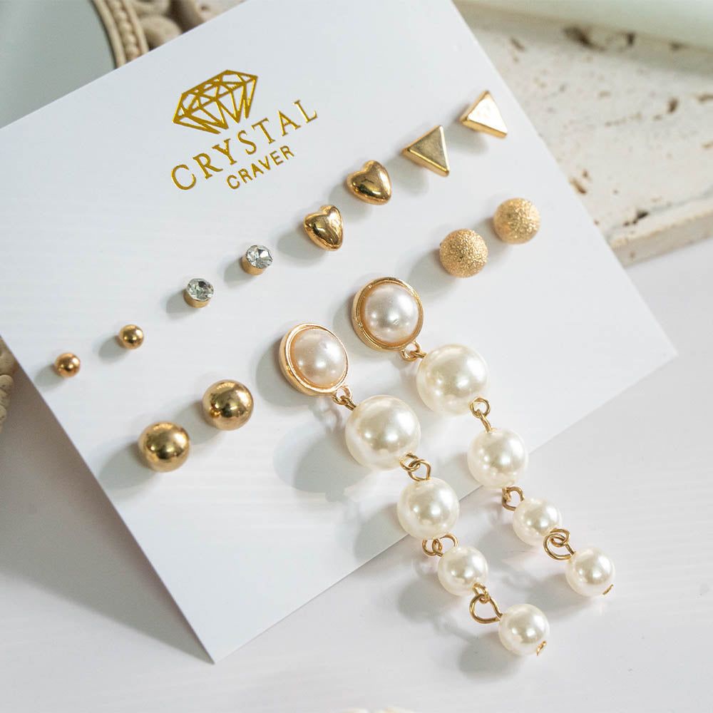 Gold & Pearl Earring Set Of 8