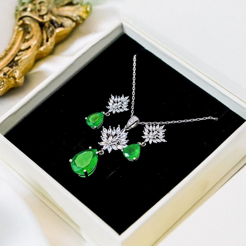 Emerald Necklace Set With Earrings