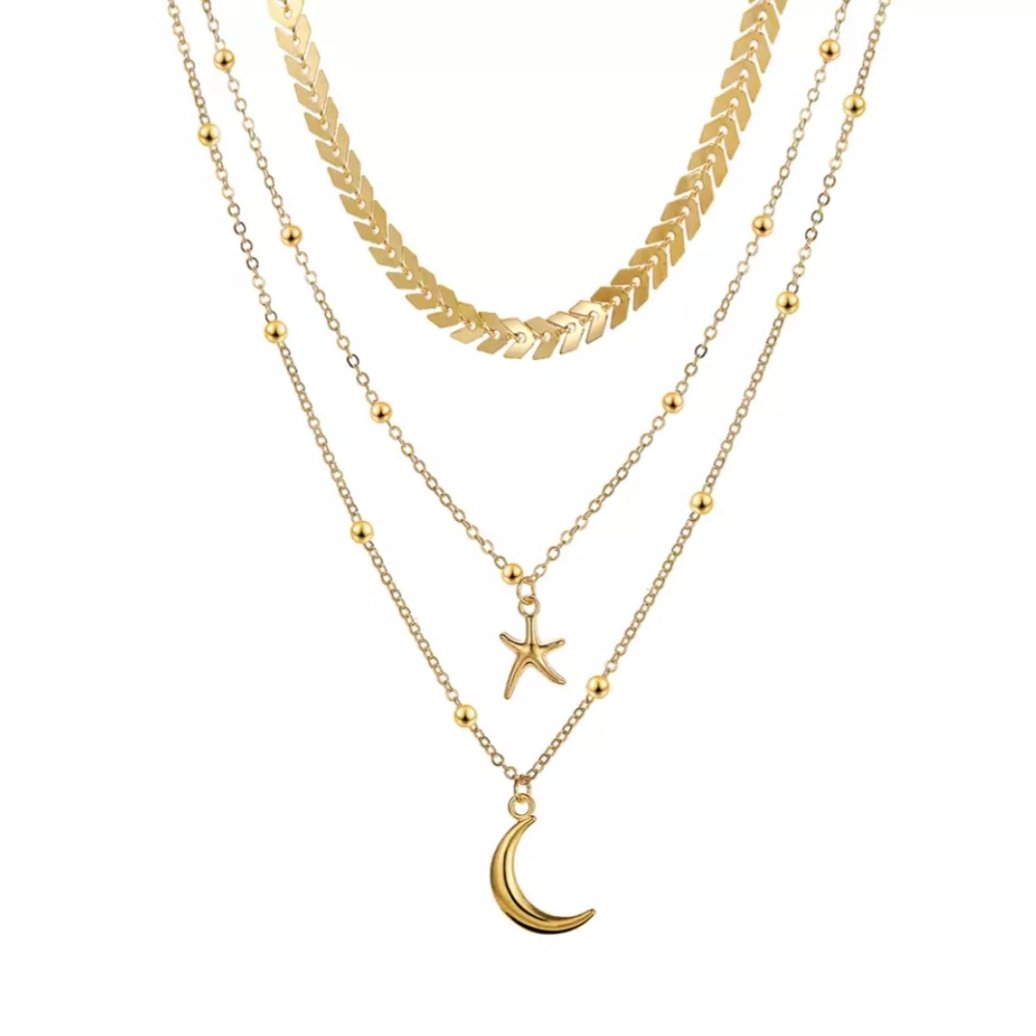Moon Star Gold Plated Layered Necklace