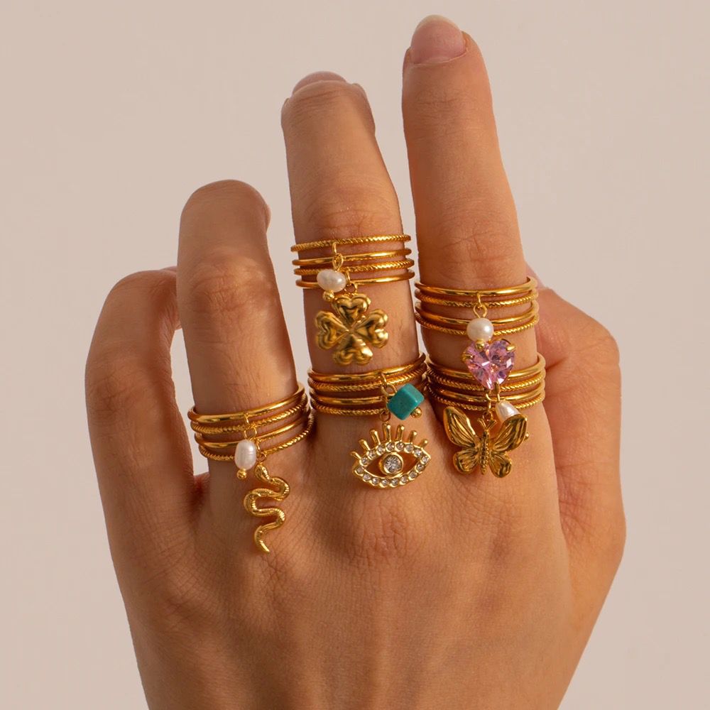 Layered Charm Stainless Steel Rings
