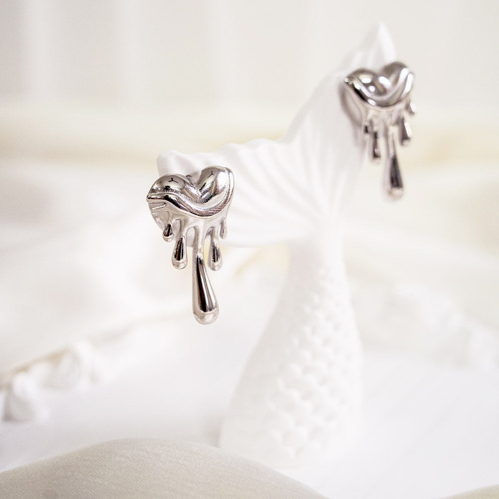 Silver Melting Heart Stainless Steel Earring