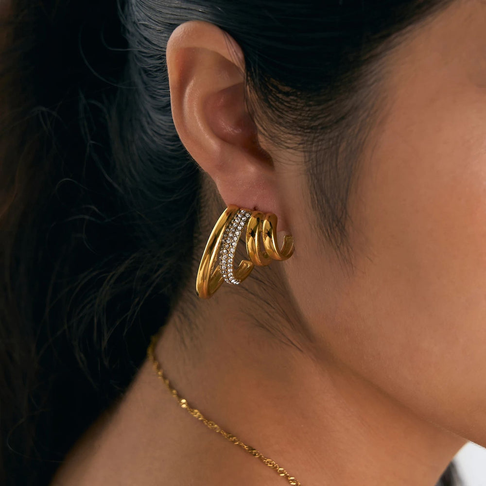 Twisted Zircon Stainless Steel Hoop Earring